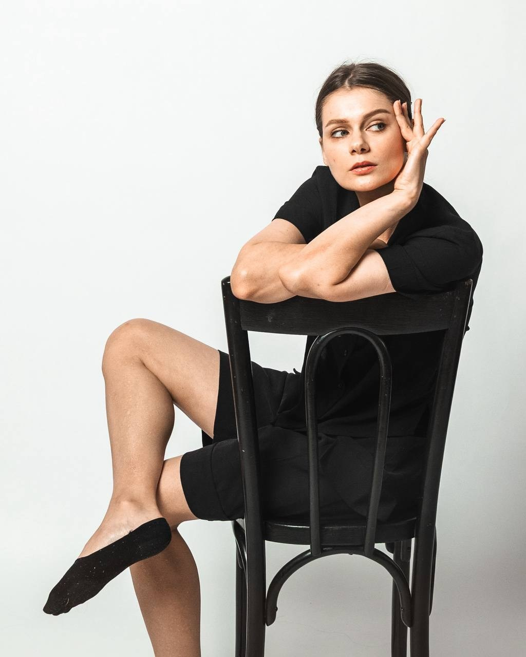 Белое хорошо контрастирует с черным фоном и наоборот, черная одежда хорошо работает на белом. Но можно и слиться, все зависит от ваших идей! Вы всегда можете принести с собой несколько комплектов, и переодеться во время съемки.
